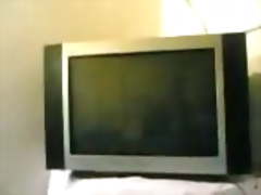 Sexy punjabi girl from Delhi alone at home in lounge masturbating while watching a porn movie on TV.